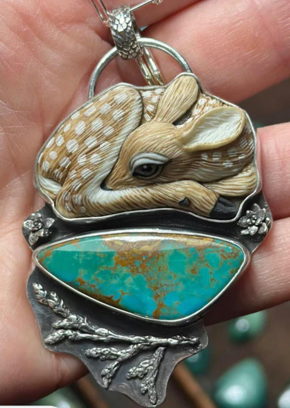 Laura Mears Fawn in the Forest Pendant Rising Phoenix Turquoise